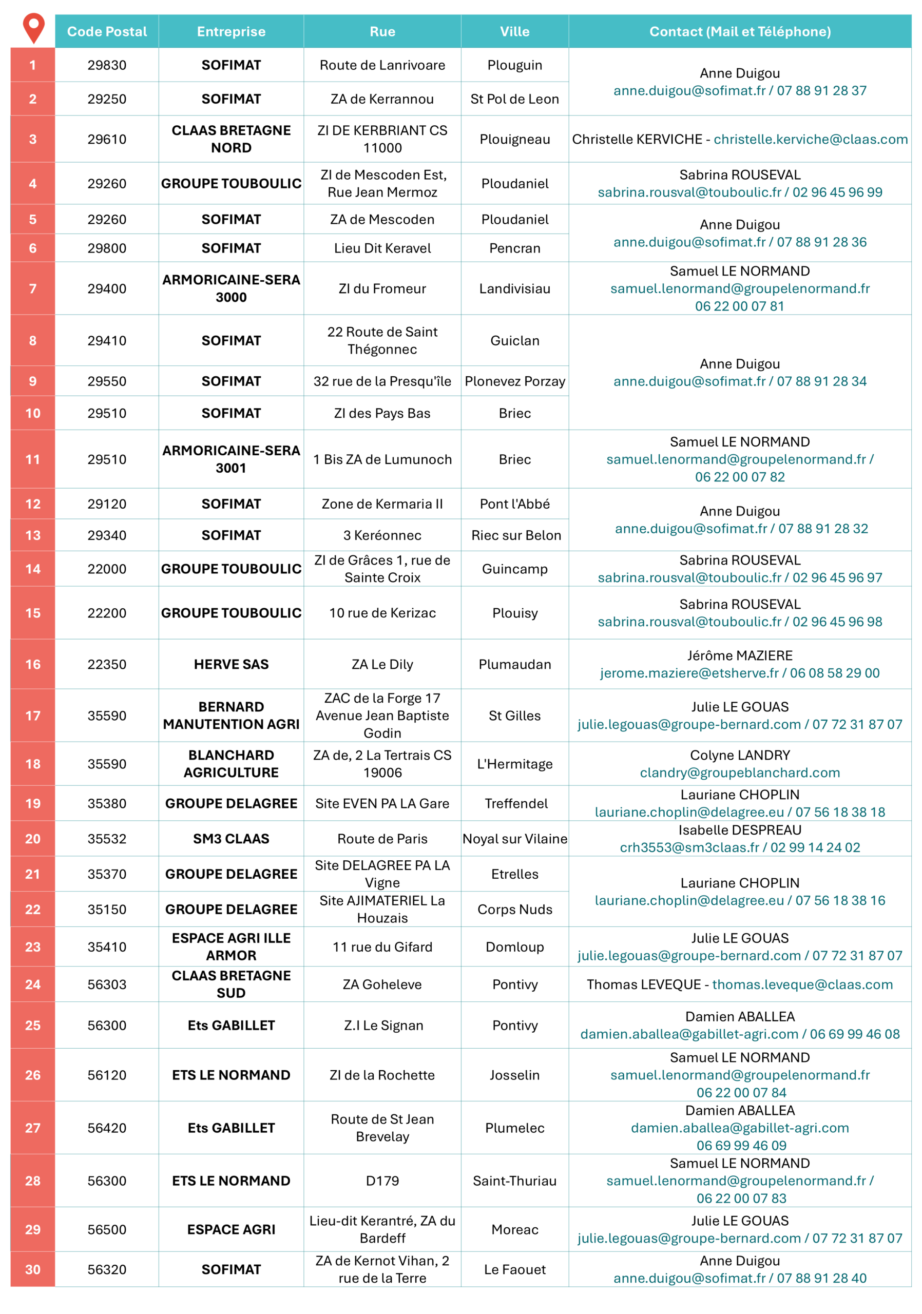 Pour plus d’informations, nous vous invitons à contacter directement les entreprises listées dans le tableau ci-dessous :
